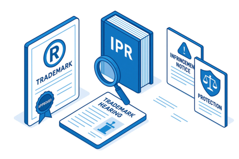 - Trademark registration process and related hearings.
